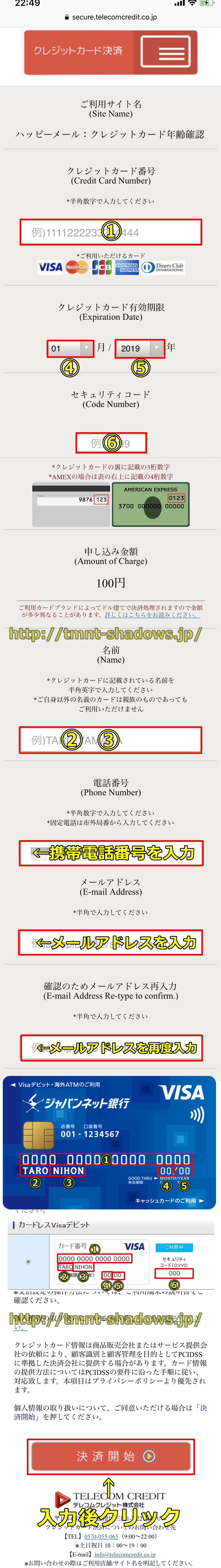 【クレジットカードによる確認】をクリックすると下の図のような画面が表示されますので、